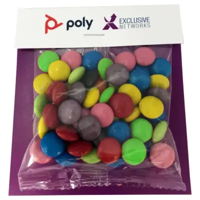 - Branded Smarties Bag 100g customised with your branding. Perfect for promotional events, corporate gifts, and marketing campaigns.