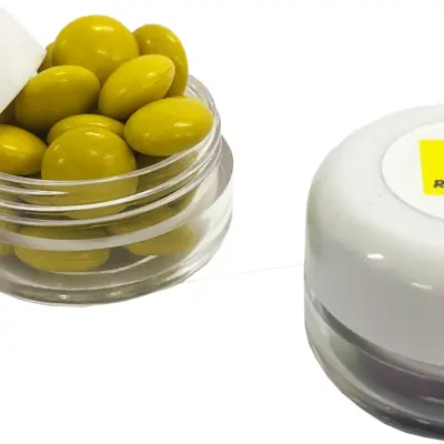 - Premium Promotional Small Screw Cap Jar with Choc Beans 20g customised with your branding. Ideal for client gifts, events, and marketing giveaways.
