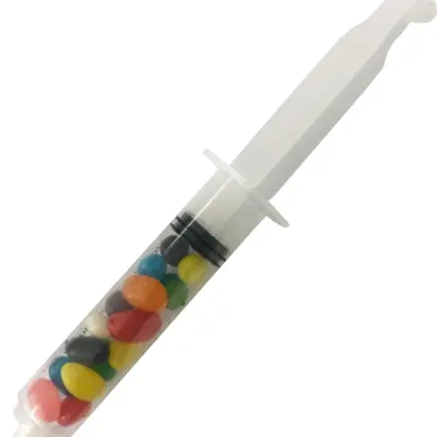 - Delicious Promotional Syringe with Mini Jelly Beans 20g branded with your logo. Perfect for promotional events, trade shows, and corporate gifts.