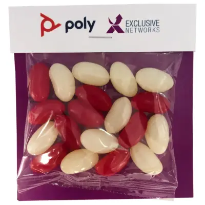 - Delicious Custom Mini Jelly Beans 25g - Branded Bag with Sticker branded with your logo. Perfect for promotional events, trade shows, and corporate gifts.