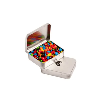 - Branded Small Rectangle Tin with Skittles 30g customised with your branding. Perfect for promotional events, corporate gifts, and marketing campaigns.