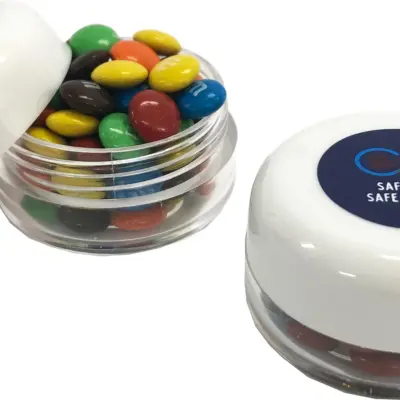 Branded Small Screw Cap Jar with Mini M&Ms 20g customised with your branding. Perfect for promotional events, corporate gifts, and marketing campaigns.