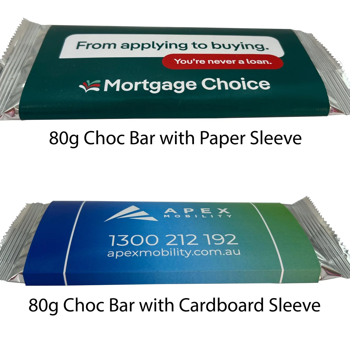 80g Couverture Milk Choc Bar (Australian Made) with Full Colour Sleeve