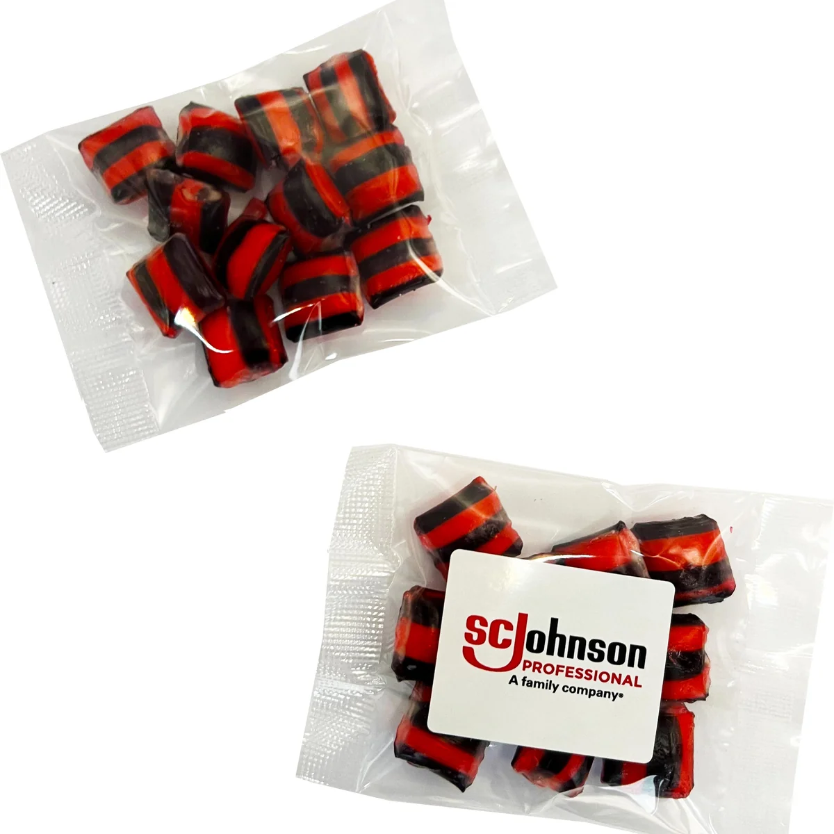 Corporate Coloured Humbugs in cello bag 50g (Normal or Tiny Size)