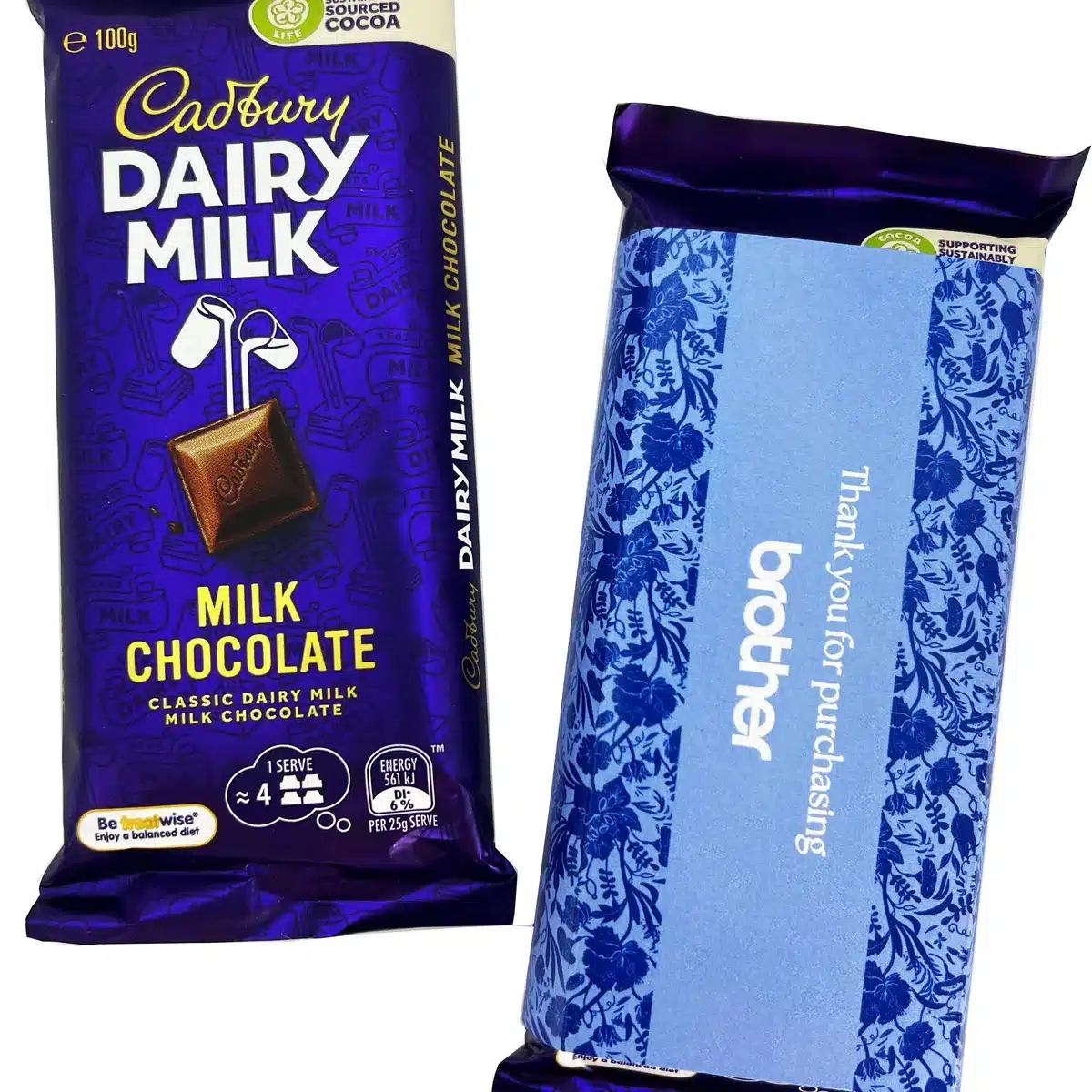 Each Cadbury Dairy Milk comes personalised with a custom-printed sleeve that wraps around the original packaging. Smooth, creamy Australian milk chocolate — a beloved classic. These promotional chocolate bars deliver the perfect balance — a product people already love, presented with your brand front and centre.