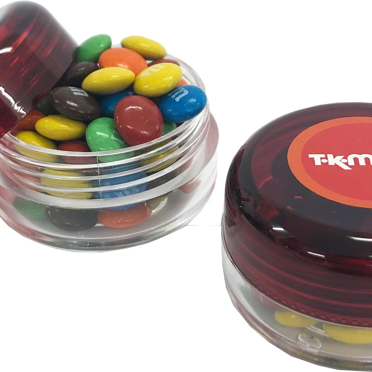 Branded Small Screw Cap Jar with Mini M&Ms 20g customised with your branding. Perfect for promotional events, corporate gifts, and marketing campaigns.