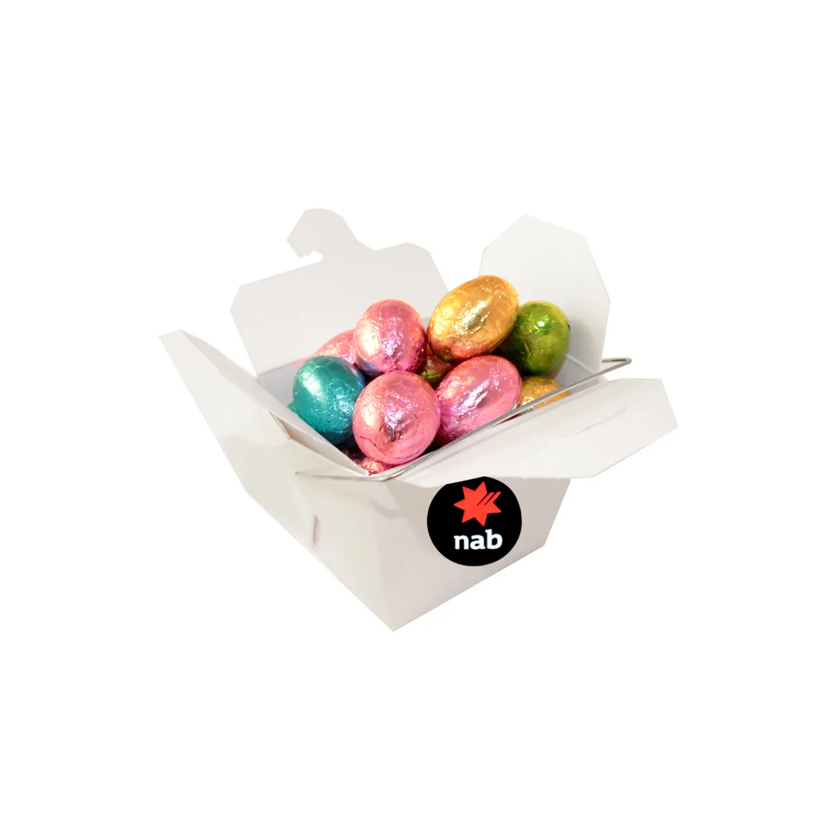 Fill a branded noodle box with mini solid Easter eggs for a fun, memorable promotional gift.
