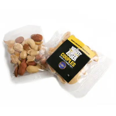Each small pull can contains 50g of peanuts. Premium nuts and dried fruit for healthy snacking. The compact pull can format is desk-friendly with a satisfying ring-pull open. These branded cans become communal fixtures — the generous contents encourage sharing while your branding stays visible on desks and in break rooms.
