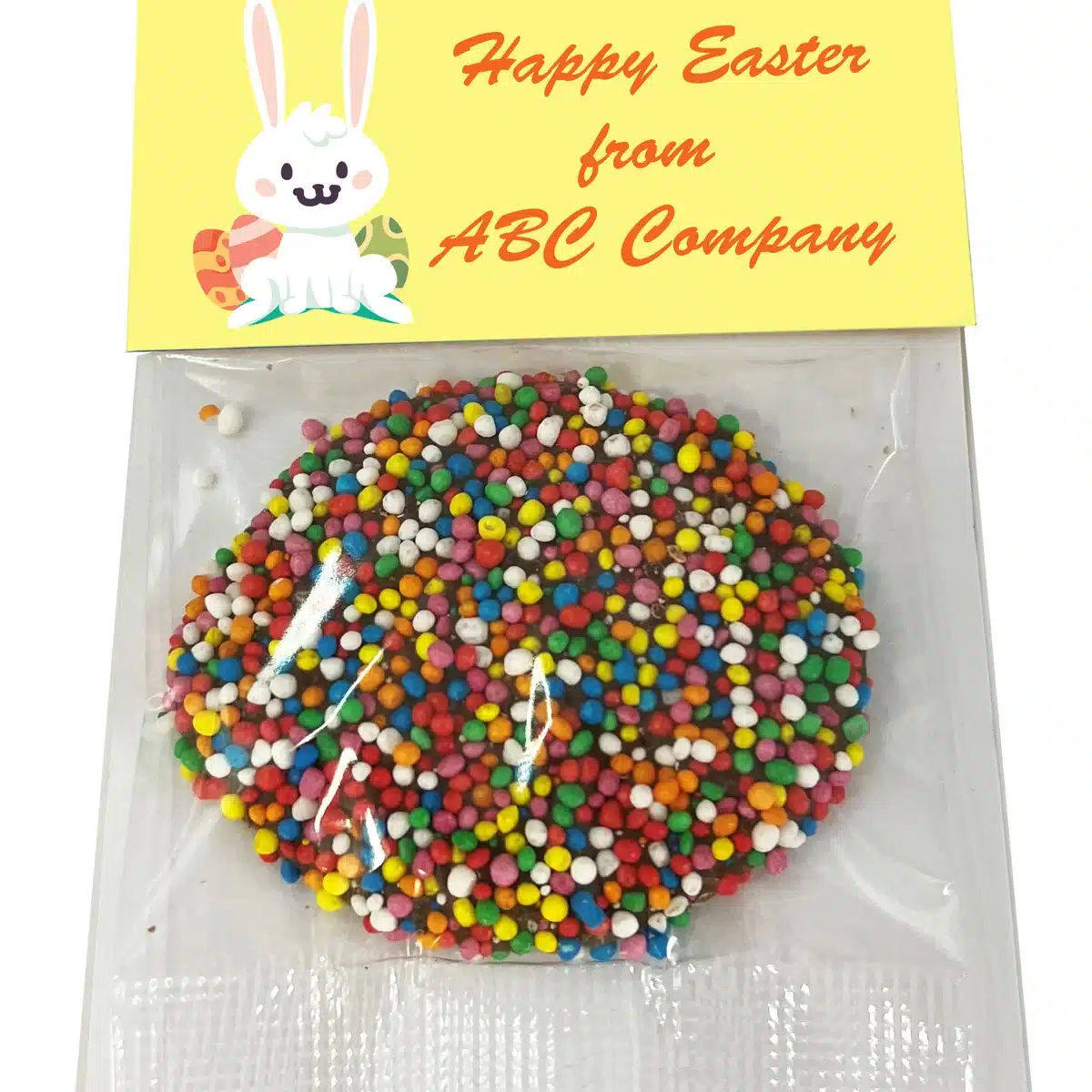 Billboard Card with 20g Chocolate Freckle stapled to card