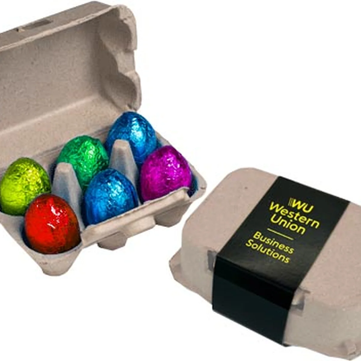 Promotional Carton with x6 Chocolate Eggs – Sticker on Egg Carton