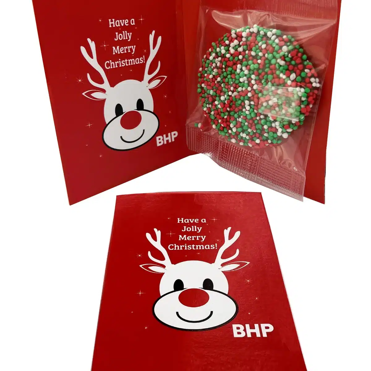 Festive Promotional Gift Card with Christmas Freckle 20g with your custom branding. Perfect for Christmas promotions and seasonal corporate gifts.