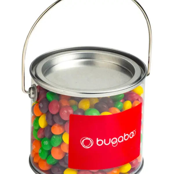 Taste the rainbow from your very own bucket. This branded Skittles bucket becomes a desk staple that gets reached for daily.