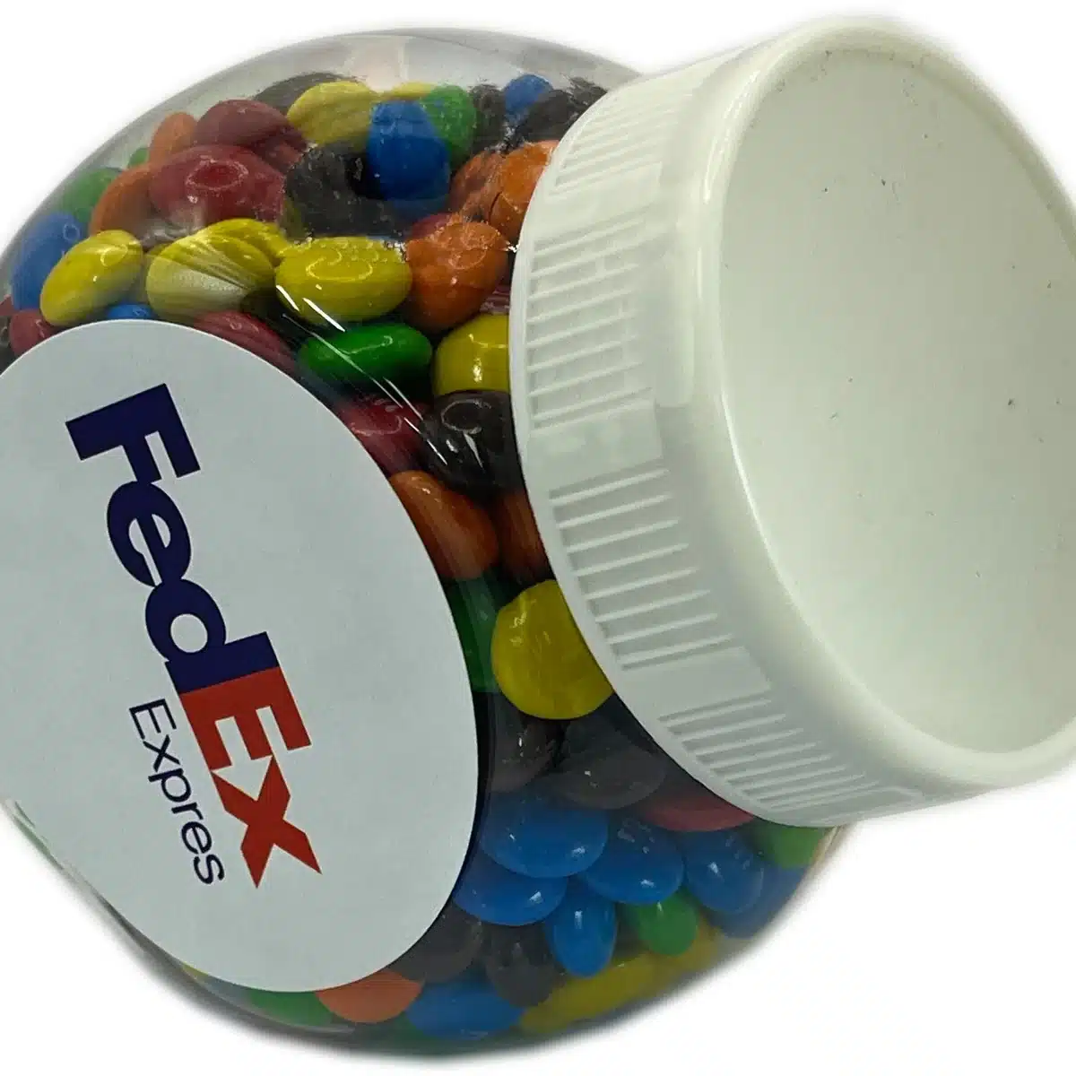Everyone recognises M&Ms — and now they’ll recognise your brand too. This glass jar filled with the iconic chocolate treats makes your logo impossible to ignore.