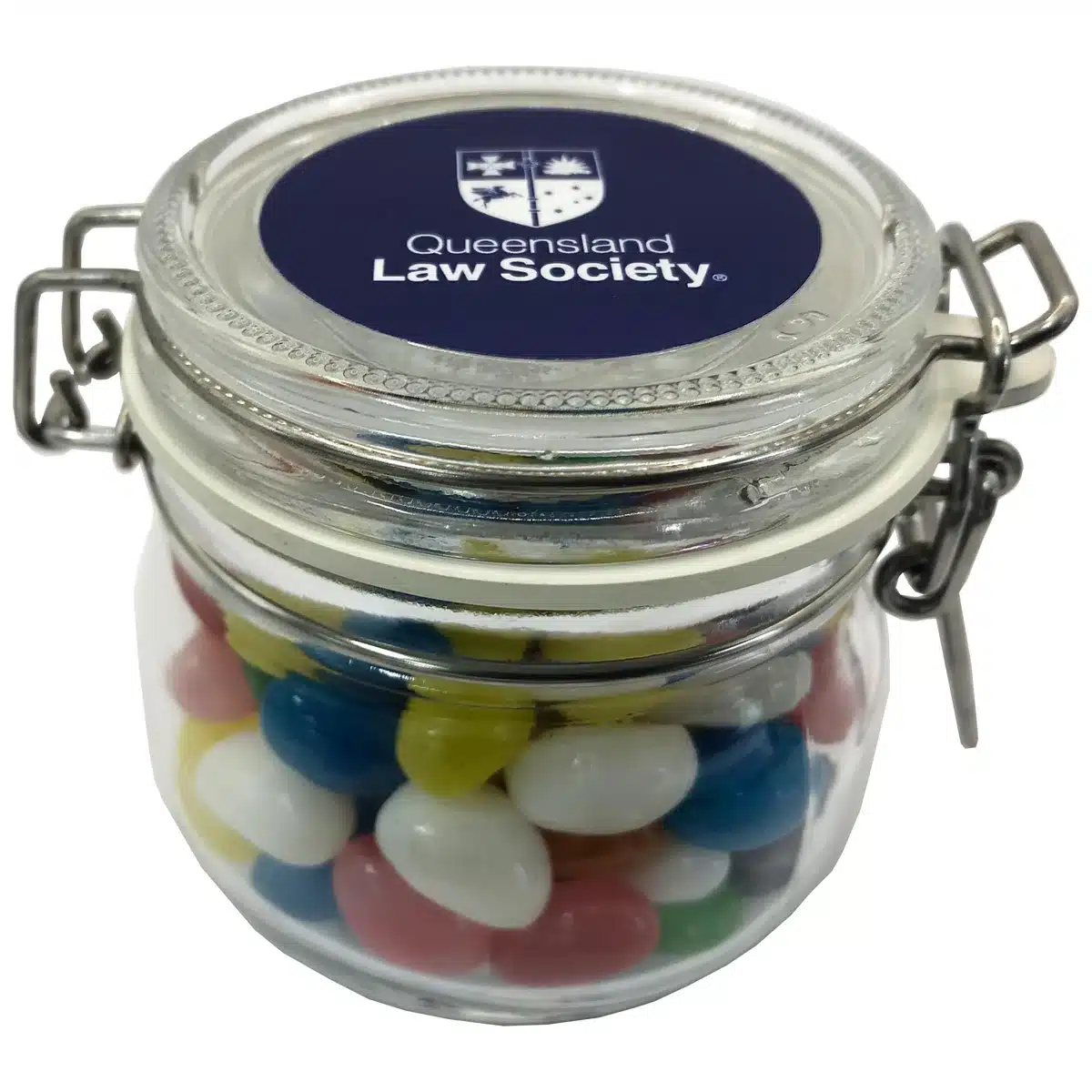 Promotional Glass Clip Lock Jar with Mini Jelly Beans 80g