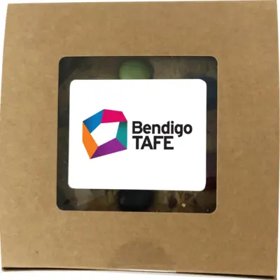 Each timtam is individually wrapped for freshness — quality you can see and taste. These branded baked treats elevate any coffee break or meeting, delivering bakery-quality impressions with your branding.